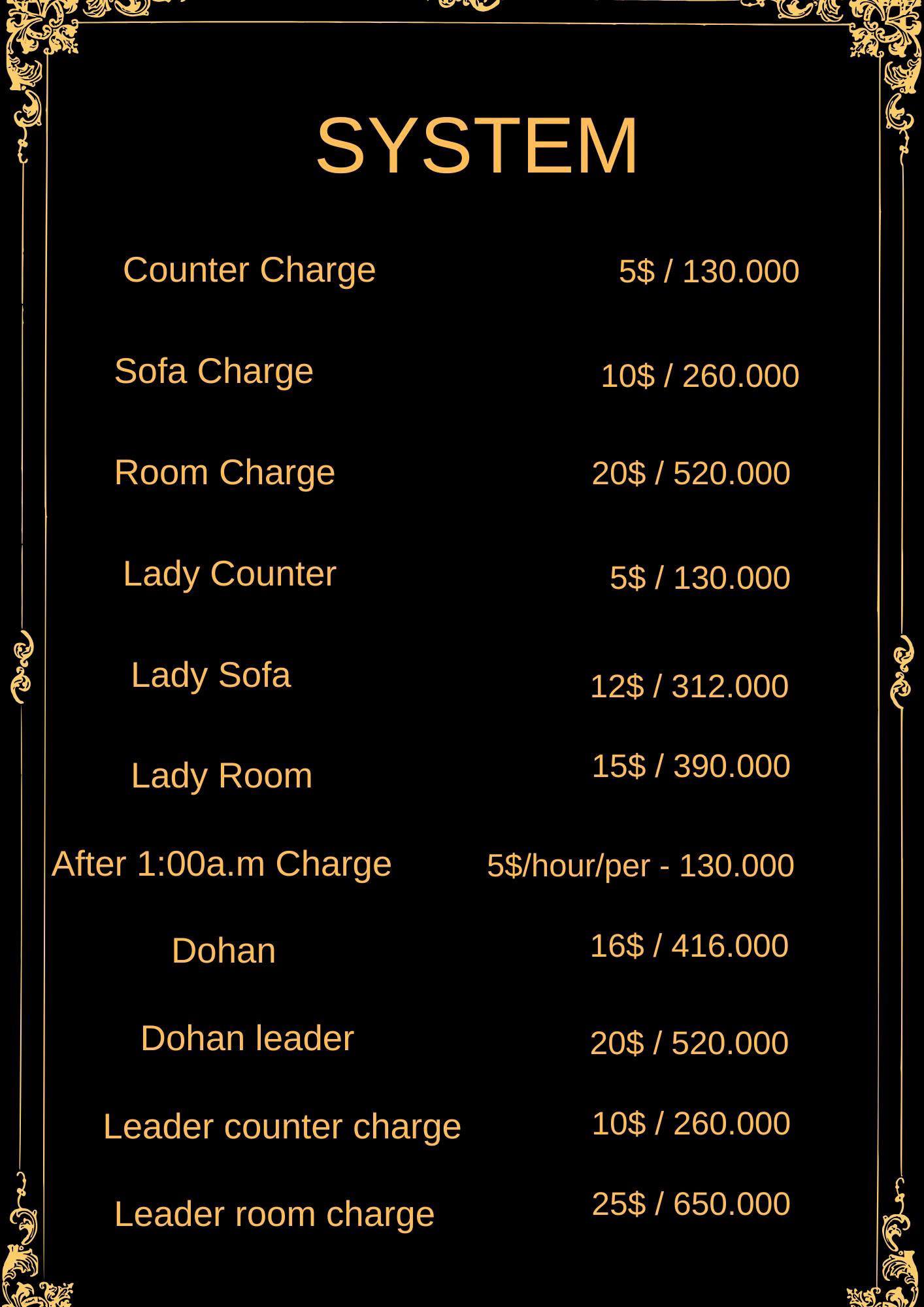Unlimited-time seating charges (no hourly limit before 1:00 AM)